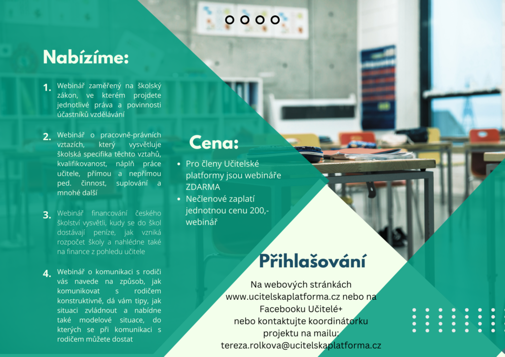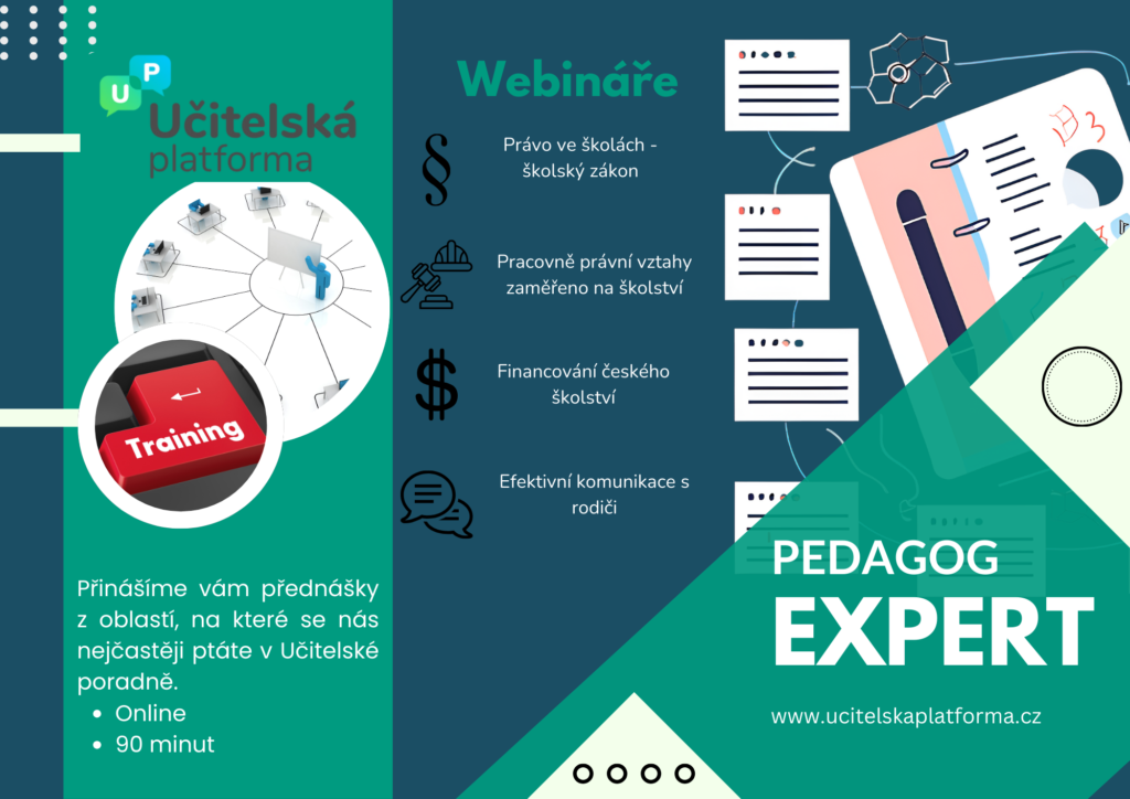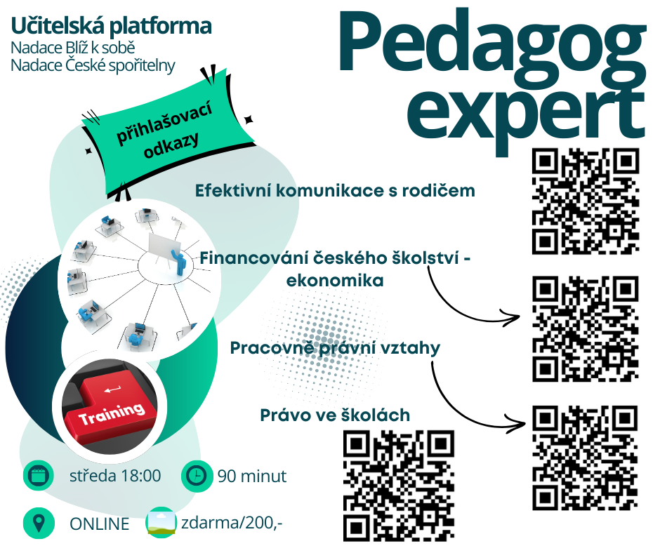 Otevíráme další běhy kurzu Pedagog expert. Tentokrát se můžete přihlásit i na jednotlivé webináře. Kurzy vedou naši zkušení mentoři. V případě dotazů kontaktujte koordinátorku Terezu Rolkovou na tereza.rolkova@ucitelskaplatforma.cz.
